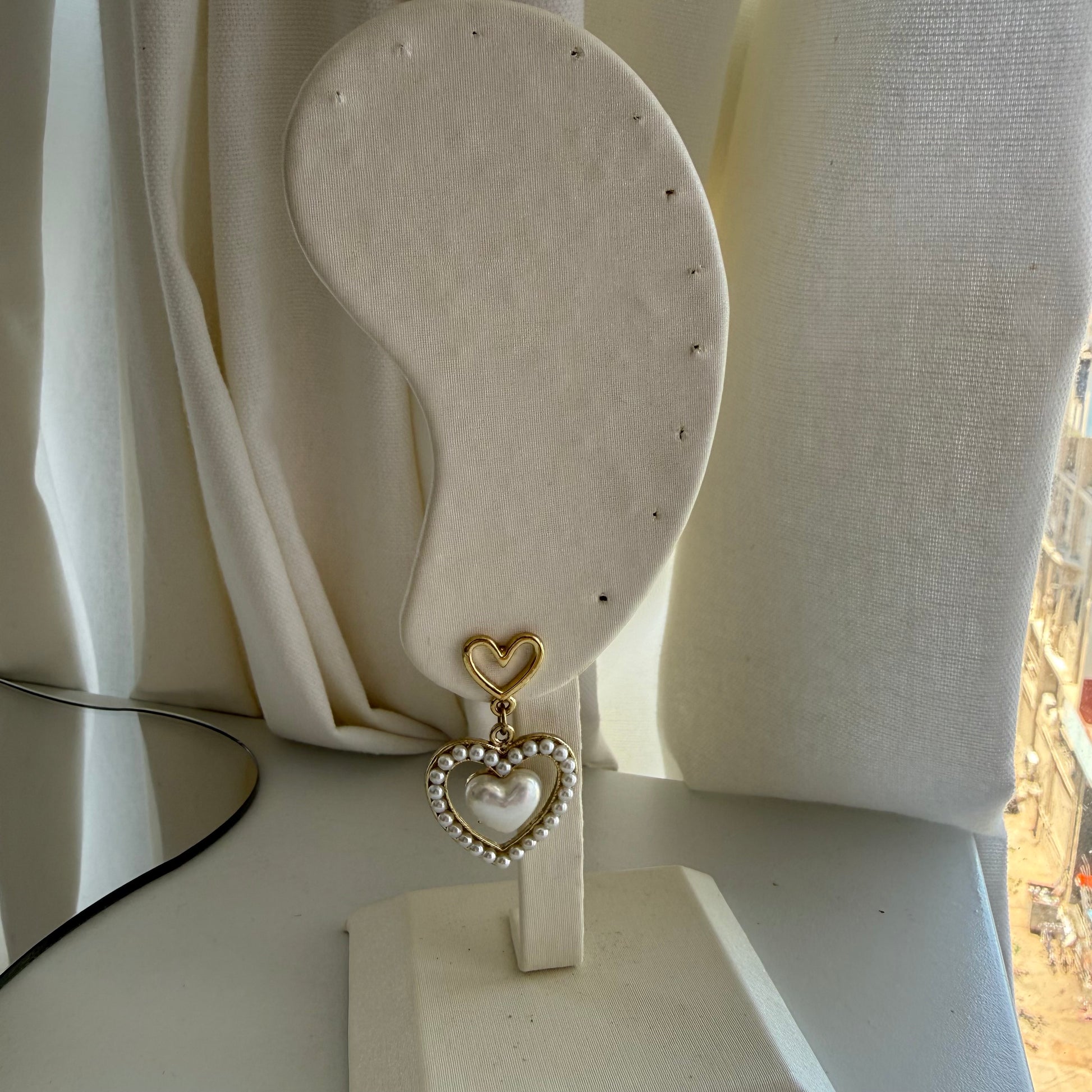 Double Heart Pearl Drop Earrings