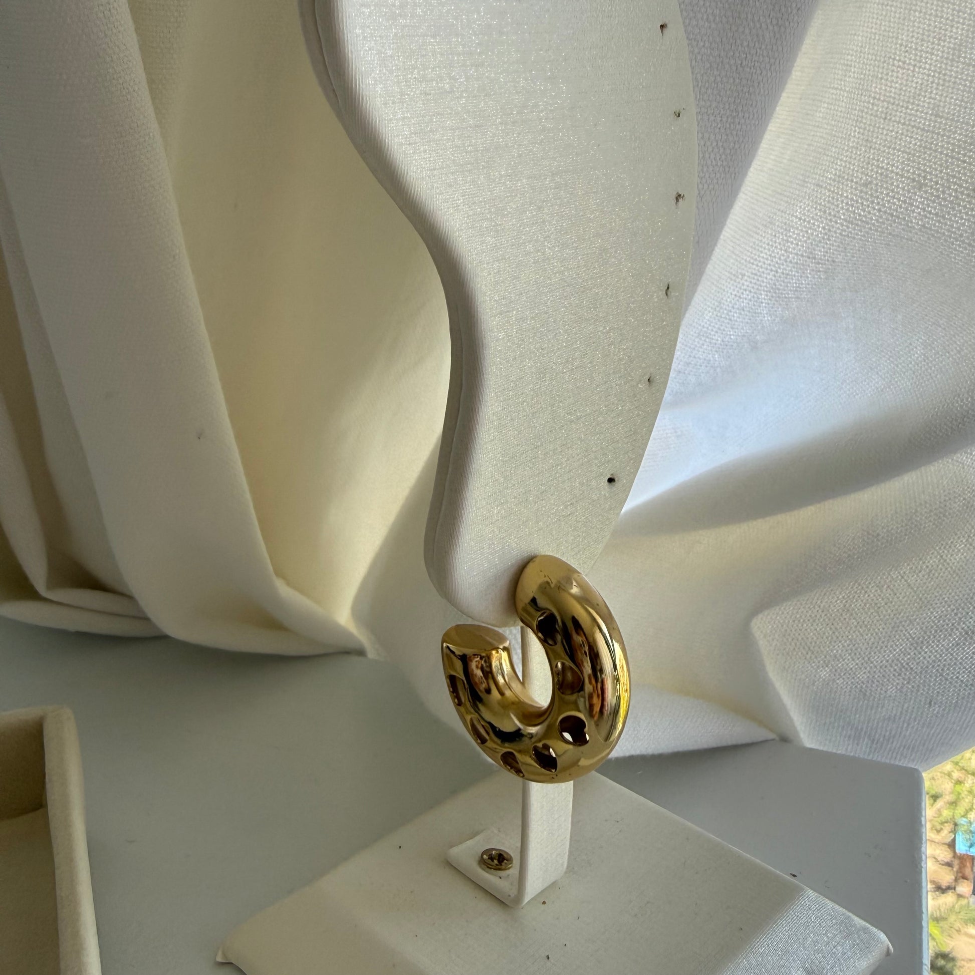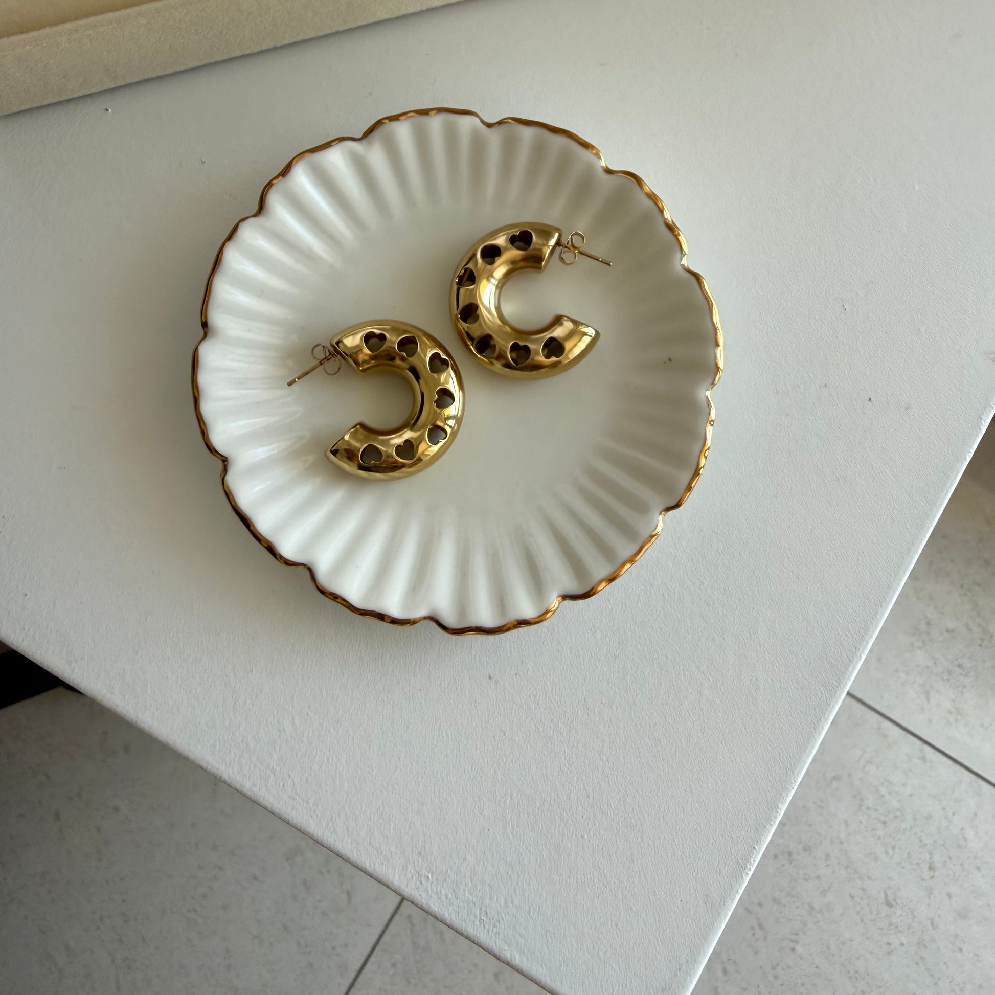 Make a bold yet romantic statement with these trendy gold hoop earrings featuring stylish heart cut-out details. Crafted in a chunky open-circle design, these statement hoops are perfect for adding charm to your everyday look or dressing up for special occasions. Lightweight, versatile, and eye-catching, they’re the ideal choice for gifting or treating yourself. A must-have fashion accessory for lovers of unique gold earrings.